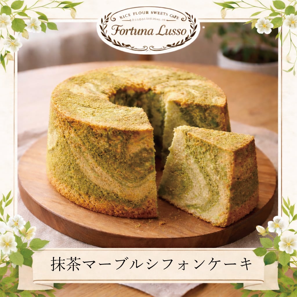 【グルテンフリー(米粉100%) 米粉シフォンケーキ 抹茶マーブル】